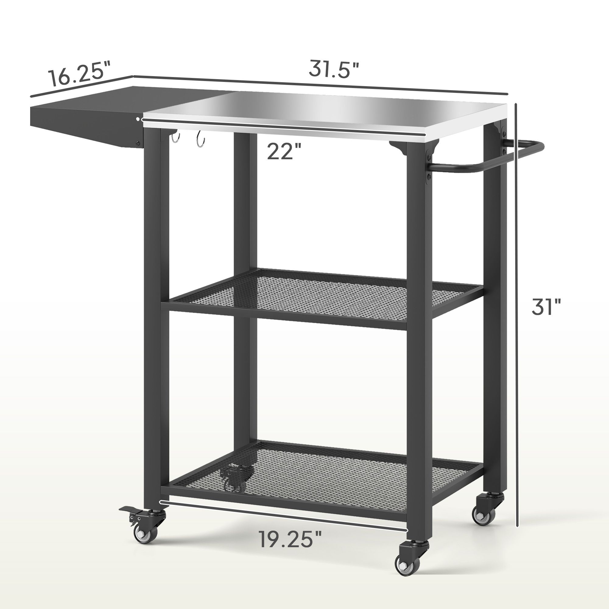 1.- Stainless Steel Top with Foldable Side Table: Crafted with a 22" x 16.1" stainless steel tabletop, this outdoor prep table offers heat resistance, easy food prep cleaning, and a 9.4" foldable extension for extra space when required