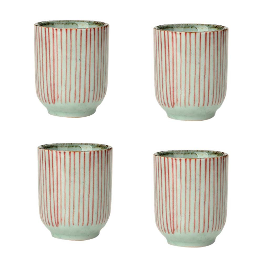 Home > 4Pcs Japanese Style Red Stripe Ceramic Teacups Small Straight Wine Glass 150ML