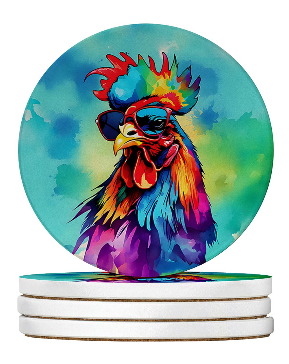 Home > Hippie Animal Rooster Large Sandstone Coasters Pack of 4 Absorbent Round Coasters Decor Gifts for Men or Women, 4 in, Multicolor