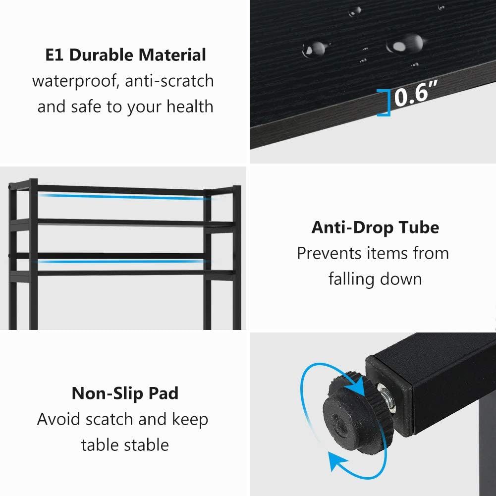 [Solid Construction & Reinforced Rod]Strong iron frame and quality 0.59' thick chipboard enhance the strength, so you can put all you need on this baker rack. 6 reinforced iron rods of each tier prevent items from slipping and increase the loading capacity. Floor levelers not only can be used in uneven ground to prevent scratches, but also make adjustment of height to meet your various demands.