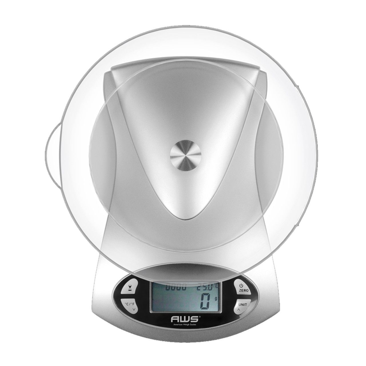 The Kitchen pro features a modern tempered glass and silver plastic construction. Allowing for quick weighing of recipe ingredients with its highly accurate advanced load sensor. All inside an ultra-thin design that makes it easy to store. The 5,000-gram capacity and included 4-liter bowl give users the ability to weigh an extensive variety of items. The large LCD display makes weights easy to read, shows the time, can be used as a timer, and tells the temperature in the room. This scale will help make anyone a pro in the kitchen.