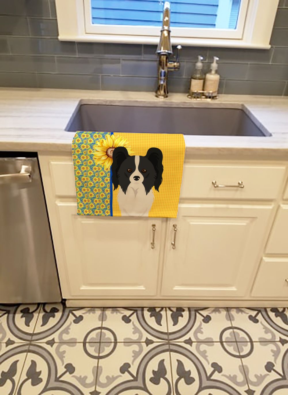 Kitchen Towel featuring breed specific Papillon artwork. Add this colorful Kitchen Towel to decorate for Summer, This Kitchen Towel is from Caroline's Treasures collection Summer Sunflowers. Experience the perfect blend of aesthetic appeal and functional excellence with our Plush Velour Kitchen Towels. These are not your ordinary decorative kitchen towels that gather dust. Instead, they are designed to be as practical as they are stylish. The front layer of our towel is constructed from a minky plush polyester, known for its durability and color retention. Unlike conventional kitchen towels, the artwork on our towels is dyed directly into the fabric, ensuring vibrant colors that last. Polish your glassware to a brilliant sparkle using the plush front side of the towel. Flip to the back, crafted from 100% cotton terry loop, to exploit its exceptional absorbency for drying dishes or wiping down counters. Our kitchen towels redefine the concept of functional art, offering lasting quality that maintains the towel's shape over time. Measuring 15 inches by 25 inches and weighing 2.3 lbs per dozen, these towels deliver an overwhelming sensory experience with their soft, plush, and smooth texture. The edges are meticulously finished with binding, enhancing their durability and visual appeal. For your convenience, these towels are machine washable and can be dried on low heat. After the first wash, the top fabric becomes even softer and fluffier, eliminating the need for ironing. Treat your kitchen to the luxury and functionality it deserves with our plush velour kitchen towels. This Kitchen Towel is from Caroline's Treasures Dogs category of products.