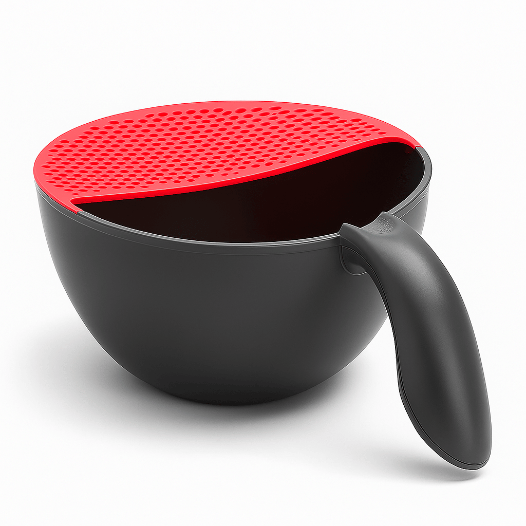 Dirt is not a spice. When your artichoke needs a soak or your cauliflower wants a shower, who you gonna call. Not that old colander it leaks water faster than you can say clean greens. That’s why we developed our unique fresh produce bath. It lets fruit, veggies, salad fixings, herbs and pulses stretch out and rinse the sand from between their toes. When they’re good and ready, the innovative hopper-strainer drains off the dirty water without letting a single bean escape. The 2-in-1 Washing Bowl & Strainer is perfect for washing food such as beans, chickpeas, sprouts and chopped fruit and vegetables. The deep, angles bowl lets you fill it to the rim while the flexible thermoplastic rubber strainer is a breeze to clean.
