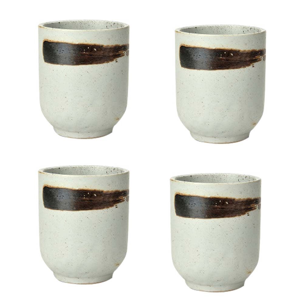 4Pcs Japanese Style Brown Stripe Ceramic Teacups Small Straight Wine Cups 150ML 4Pcs Japanese Style Brown Stripe Ceramic Teacups Small Straight Wine Cups 150ML