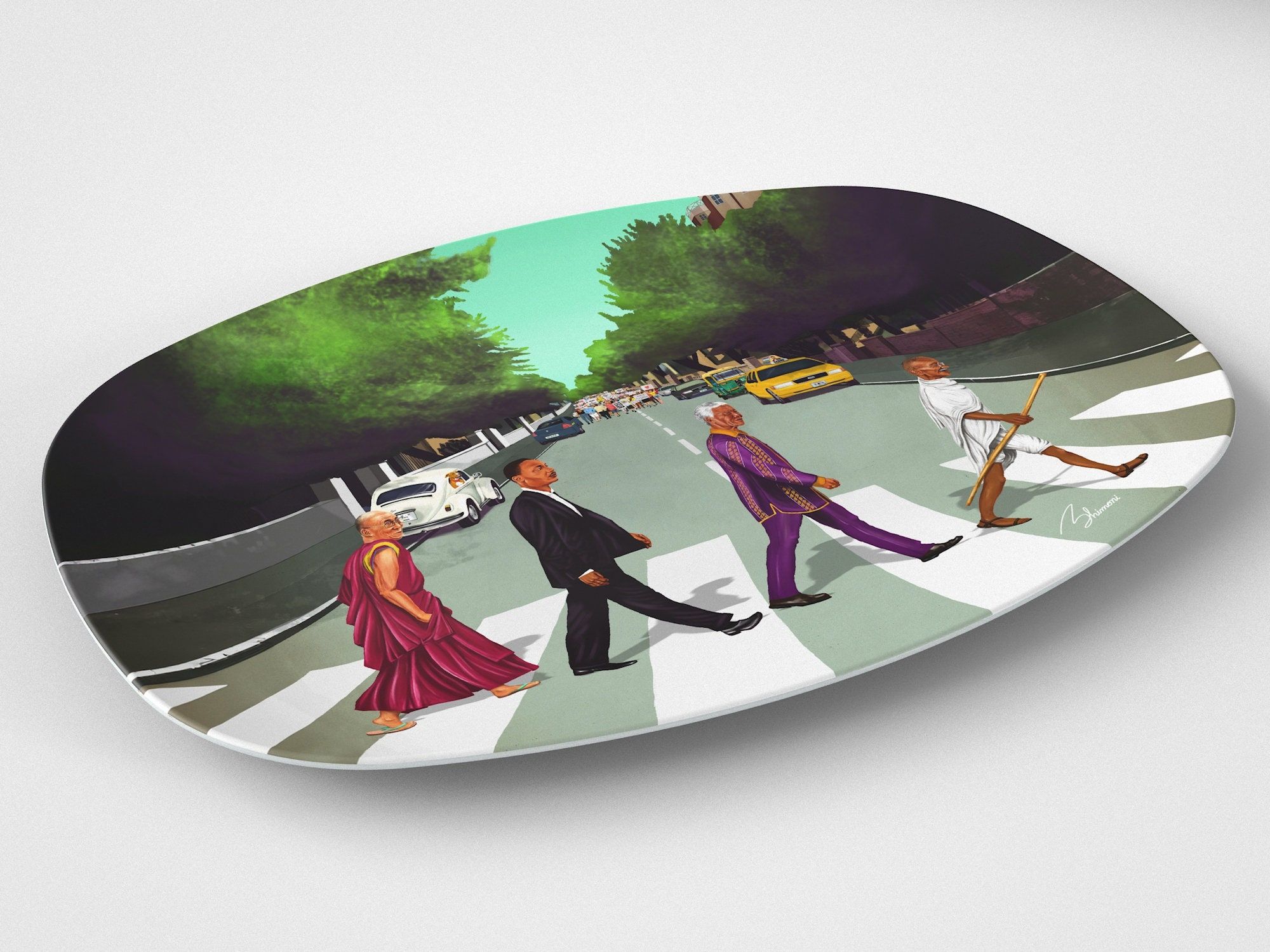 This unique 10"x14" DecoWare® platter features a thought-provoking design that brings together influential figures from various backgrounds, symbolizing unity and progress. It's perfect for collectors, peace advocates, or as a meaningful conversation piece. P R O D U C T D E T A I L S // 10"x14" Oval Serving Platter, 0.75" Tall// Microwave safe// Oven-safe up to 250 degrees Fahrenheit for 1 hour// Dishwasher-safe// Molded from DecoWare® - a high performance medical-grade polymer// Safe for food contact// Contains no melamine, BPA's, formaldehyde or other harmful chemicals// Recyclable// 100% Made in the U.S.A.// Durable satin finish// Unbreakable with normal use  F I N E P R I N T Due to the many variations in monitors, the actual colors on each plate and platter may appear slightly different than the colors that appear on your monitor. They are awesome in real life!Each unique Platter is made to order. R E T U R N S & R E F U N D S Returns and exchanges are accepted within 14 days of delivery. If there are any problems with your order, please feel free to message me and I will help any way possible. W E L O V E O U R C U S T O M E R S Thank you so much for browsing our listings, don't hesitate to message with any questions or concerns. We strive to please you!