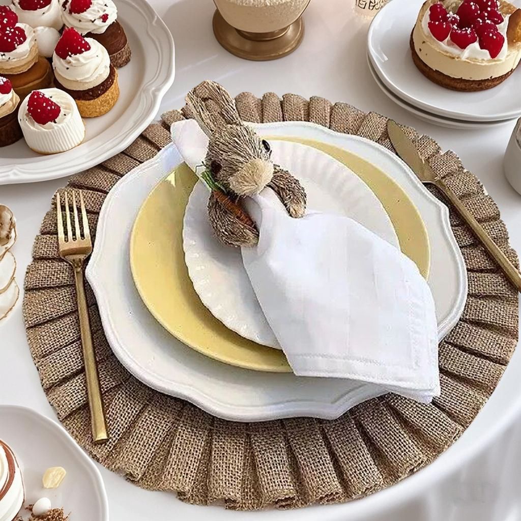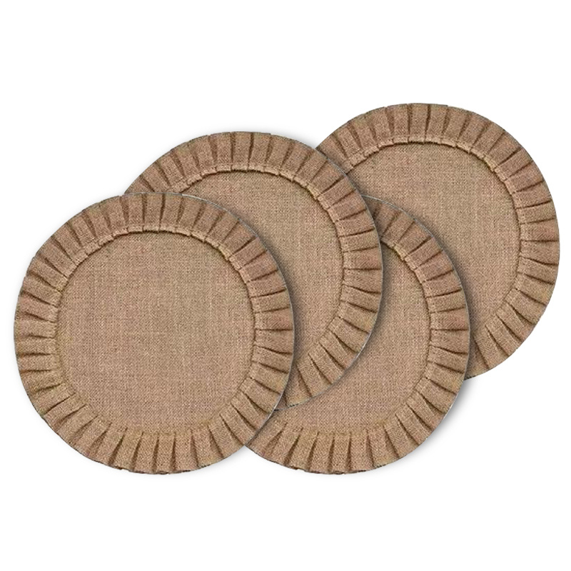 Let every meal be filled with warmth and natural charm! This ruffled round jute placemat, crafted from natural jute, brings a unique texture and natural charm. The exquisite ruffled design adds a touch of elegance and sophistication to your table. Furthermore, it's non-slip, keeping tableware secure and prevents slipping. This natural, eco-friendly material is chemical-free and effectively protects tabletops from scratches and heat damage. Whether for everyday family meals or gatherings, it adds a touch of natural beauty and practicality to your dining table.