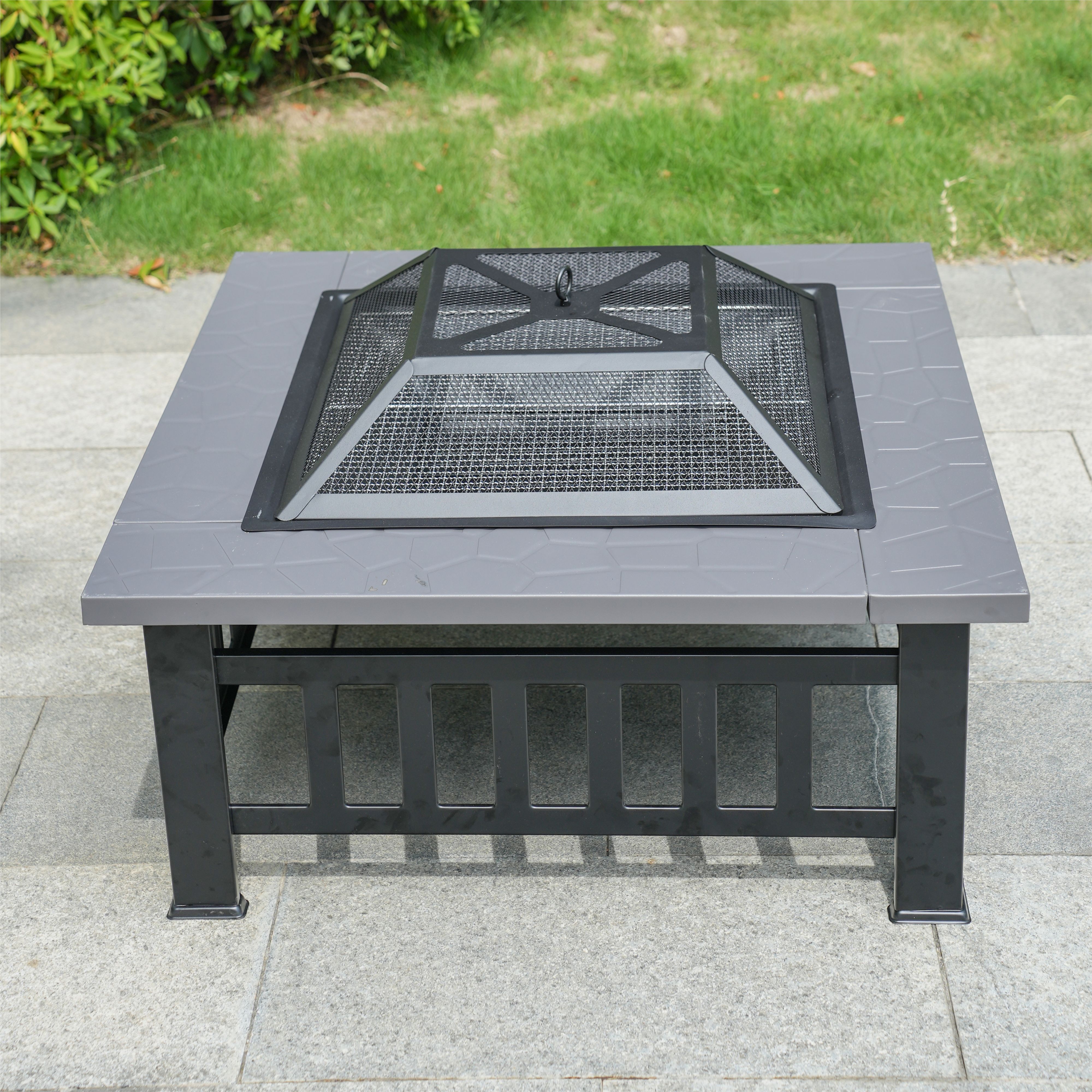Features a mesh cover to contain sparks and embers, ensuring safe and enjoyable outdoor fires.